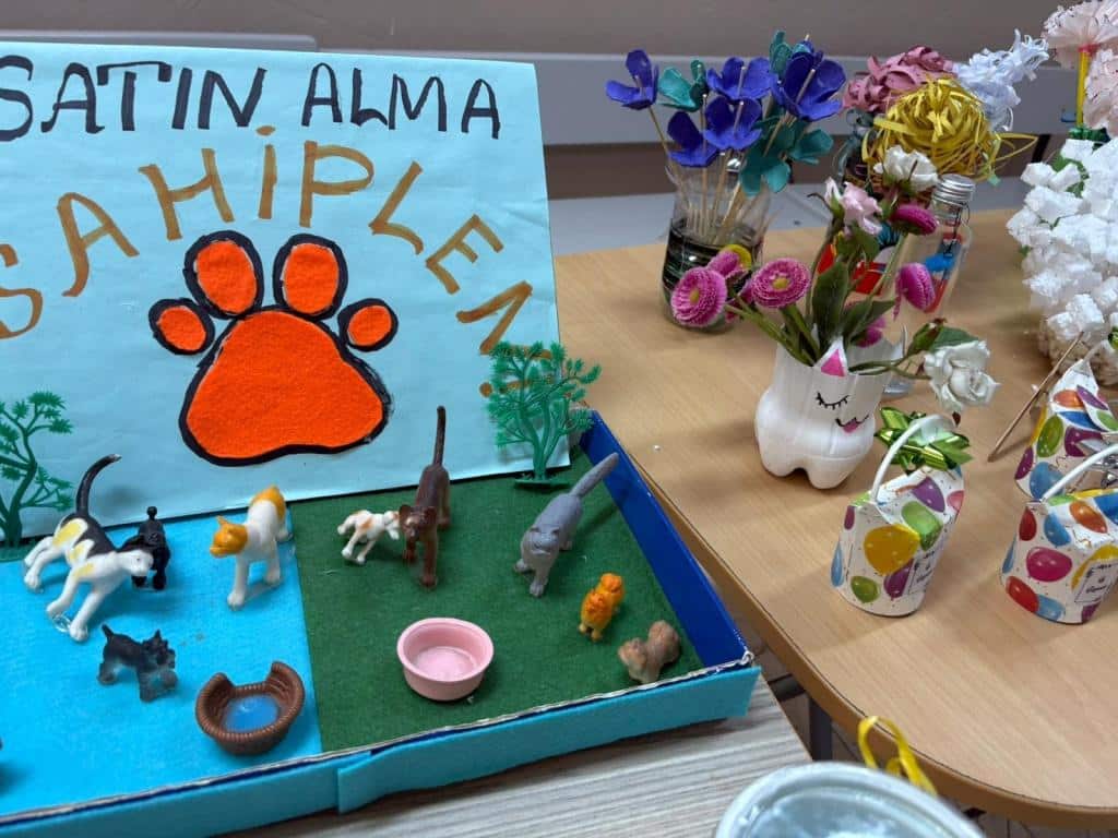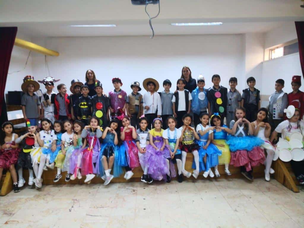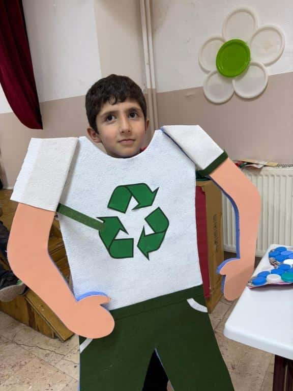 Atık materyallerle kıyafet ve tasarımlar hazırladık. Dikkat çekmek ve farkındalık oluşturmak için, defile ve ardından sıfır atık şarkıları ve slayt sunum ile çalışmalarımızı sergiledik. Okulumuz öğretmen ve öğrencileri ziyaretlerini gerçekleştirerek çalışmamızı tekrarlı sunduk. Atıkları azaltmanın, ayrıştırarak çöp atmanın ve geri dönüşümün önemi konusunda eğitici, öğretici ve eğlenceli çalışmamızla doğaya katkı sağlamaktan çok mutluyuz. Çalışmalarından dolayı 2/B ve 2/C sınıflarına teşekkür ederiz.